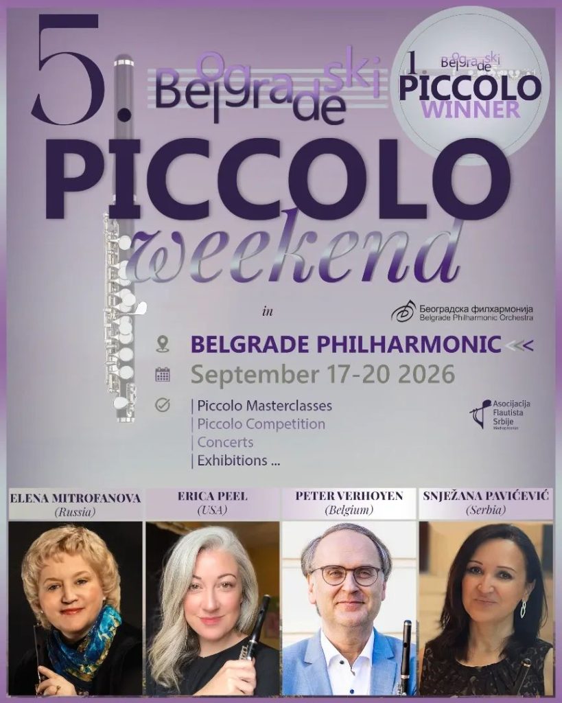 From September 17–20, 2026, Belgrade will become an international hub for piccolo artistry with the 5th Belgrade Piccolo Weekend, hosted at the prestigious Belgrade Philharmonic Orchestra. Bringing together leading piccolo performers, teachers, and students from around the world, this four-day event is dedicated exclusively to the art, technique, and repertoire of the piccolo.