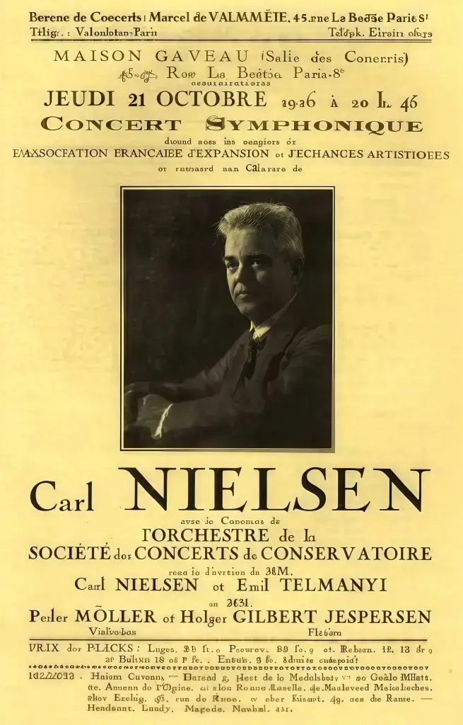 The flute concerto was initiated during Nielsen’s travels in Germany and Italy in August 1926 and was intended to be showcased in Paris at a concert dedicated to his works on October 21, 1926. Due to health issues, Nielsen crafted a temporary ending for the Paris premiere, which was well-received despite its incomplete state. Critics offered mixed reviews, with Paul Le Flem highlighting its “piquancy, drive and humor,” while Jan Meyerheim expressed difficulty in appreciating it. The premiere was a significant event for Nielsen, attended by notable composers Maurice Ravel and Arthur Honegger, who praised the performance.