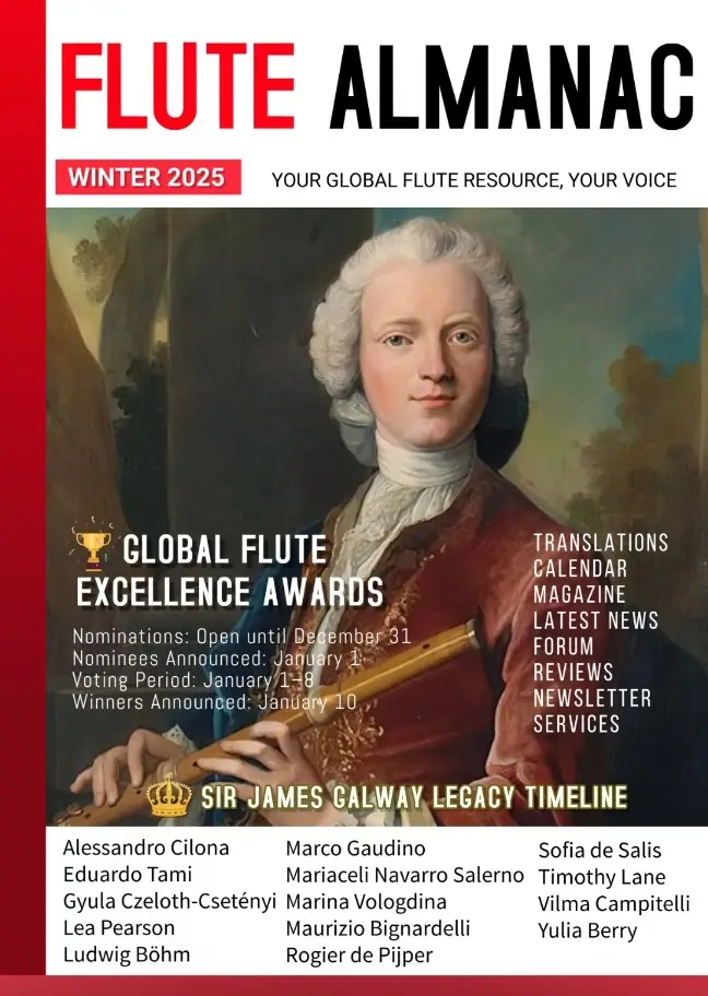 As the snow falls and music fills the winter air, we are thrilled to present the Winter 2025 Edition of Flute Almanac! This season’s issue is brimming with rich, diverse content from 14 exceptional contributors spanning 9 countries. With every article, we celebrate the artistry, history, and innovation that define the global flute community.