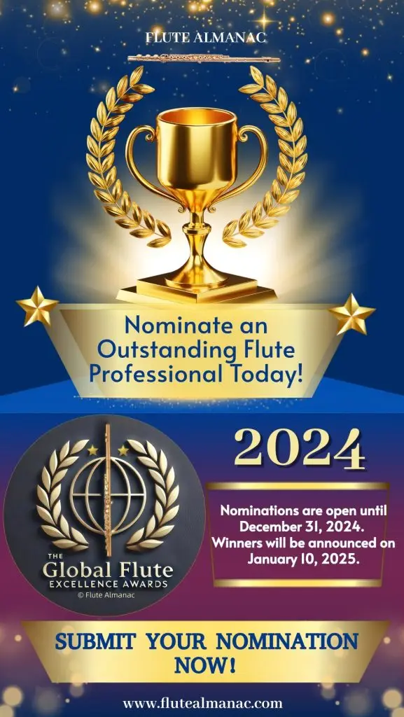 As the awards continue, we are committed to writing about each nomination and sharing the stories of these passionate and accomplished professionals. Through these articles, we aim to explain the essence of the awards: recognizing and celebrating the incredible contributions to the flute’s culture and artistry.