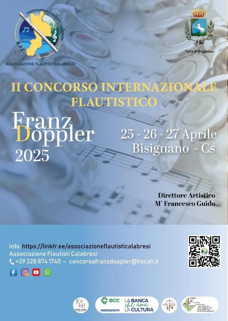 The II Concorso Internazionale Flautistico Franz Doppler 2025, organized by the Associazione Flautisti Calabresi, will take place from April 25 to 27, 2025, in Bisignano (CS), Italy. This prestigious event aims to foster collaboration and exchange among young flutists while celebrating their talent and dedication to the art of music. The competition is led by Artistic Director M° Francesco Guido, whose expertise and vision have shaped this event into an inspiring platform for flutists of all levels.