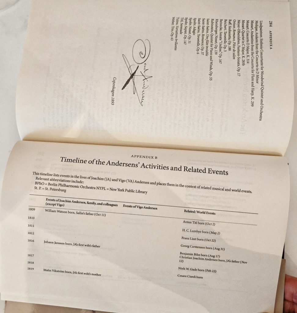 Appendix B is another highlight: a meticulously constructed timeline aligning Andersen’s life with world events, musical milestones, the careers of colleagues, and parallel activities of his brother Vigo.
