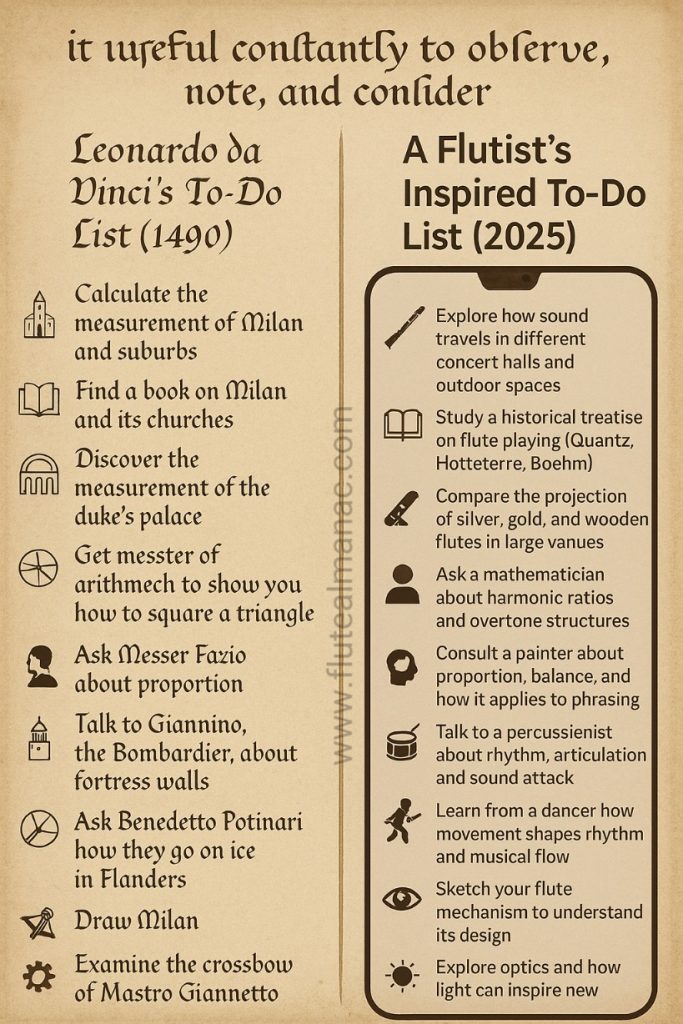 Today, we will talk about Leonardo da Vinci in a different way — through his remarkable to-do lists, and what they can teach us as flutists.