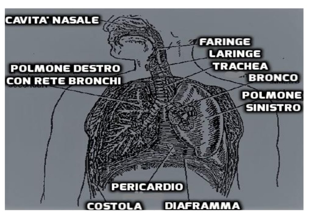 L’aria immessa nei polmoni dallo strumentista a fiato nella fase detta inspiratoria, deve considerarsi l’energia principale per la produzione dei suoni. I polmoni sono due e si trovano nell’elastica gabbia toracica, poggiando sul diaframma.