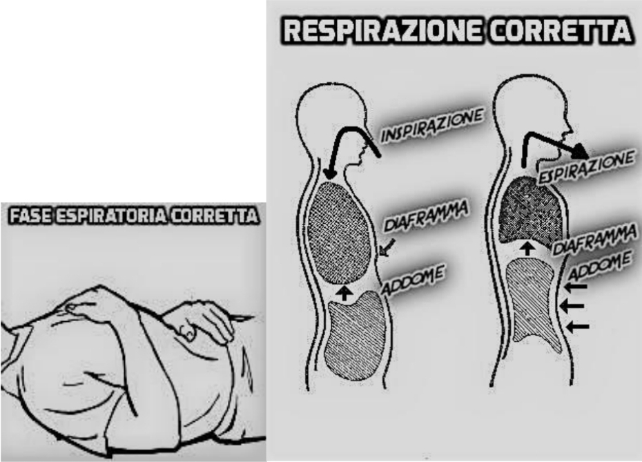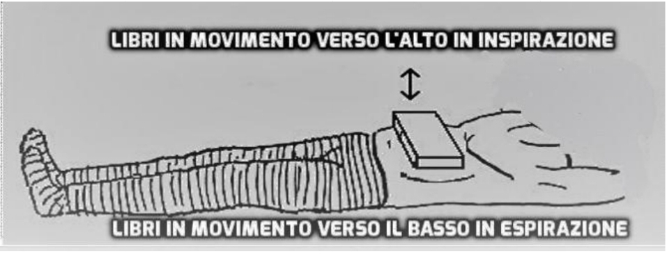 Al fine di acquisire un corretto uso del diaframma nella respirazione, si consiglia di porre dei libri sull’addome osservandone i movimenti verso l’alto nella fase inspiratoria e verso il basso nella fase espiratoria.