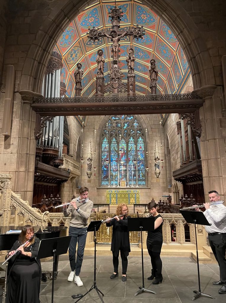 The program concluded with the Concerto in D Major for Five Flutes by Joseph Bodin de Boismortier, performed with four distinguished guest flutists: