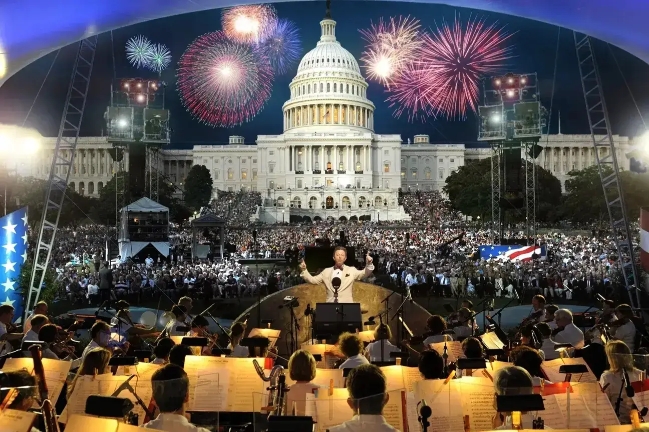On July 4, 2000, Sir James Galway performed as a guest soloist with the National Symphony Orchestra during PBS's nationally televised special, "A Capitol Fourth," broadcast live from the West Lawn of the U.S. Capitol. This event marked the first Independence Day celebration of the new millennium. The program featured a diverse lineup, including host Barry Bostwick, Ray Charles, Audra McDonald, Lee Ann Womack, Kristin Chenoweth, and jazz pianist David Benoit. Highlights included Ray Charles's rendition of "America, the Beautiful" and a salute to "Peanuts" creator Charles Schulz. The National Symphony Orchestra, under the direction of Leonard Slatkin, performed pieces such as Aaron Copland's "Fanfare for the Common Man," and the evening concluded with Tchaikovsky's "1812 Overture" accompanied by fireworks.