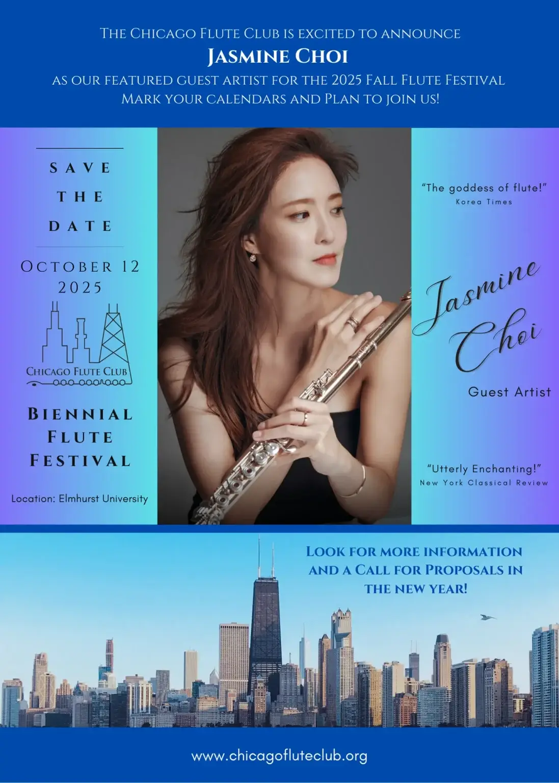 The Chicago Flute Club is thrilled to announce its Biennial Flute Festival, set to take place on Sunday, October 12, 2025, at the beautiful Elmhu...