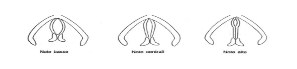 All’aumentare dell’altezza del suono, diminuisce l’escursione delle corde vocali fino a chiudere quasi completamente la glottide. Per glottide si indica, nella scienza medica, l’apertura limitata delle corde vocali.